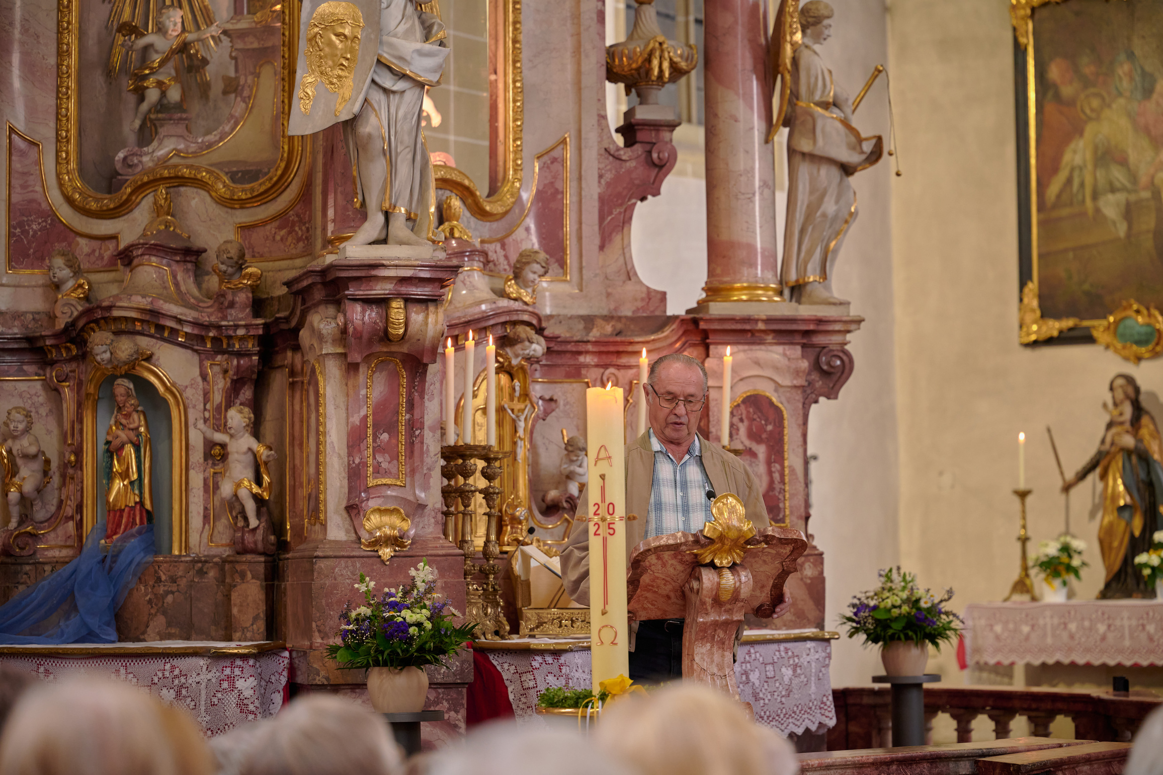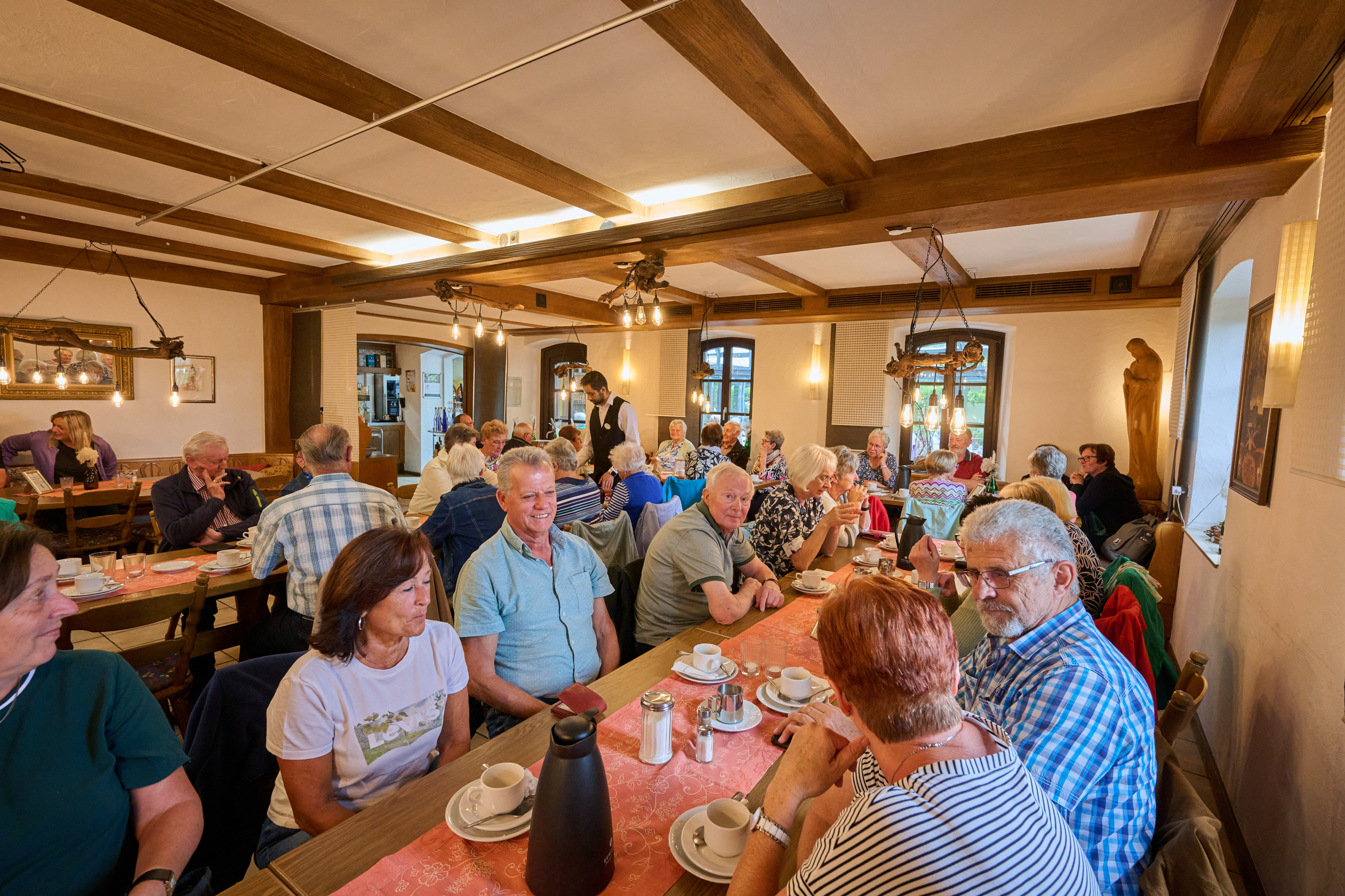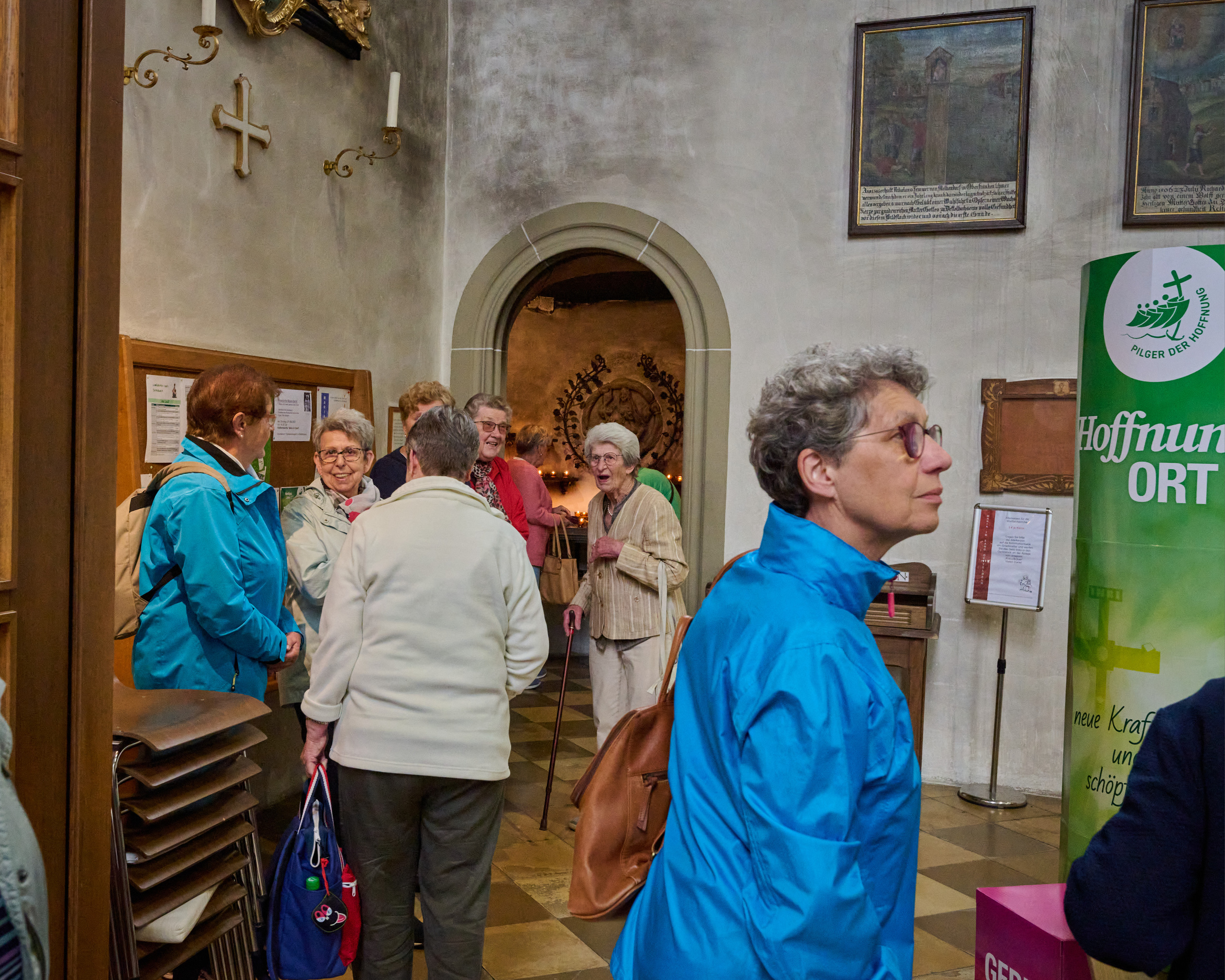 Pfarrer Jan Kölbel feierte den Gottesdienst und sprach Gedanken zum Jahresthema „Pilger der Hoffnung“. Die Abendeinkehr war in Schweinberg und gegen 20.30 Uhr war der Bus mit den Senioren wieder im Odenwald.