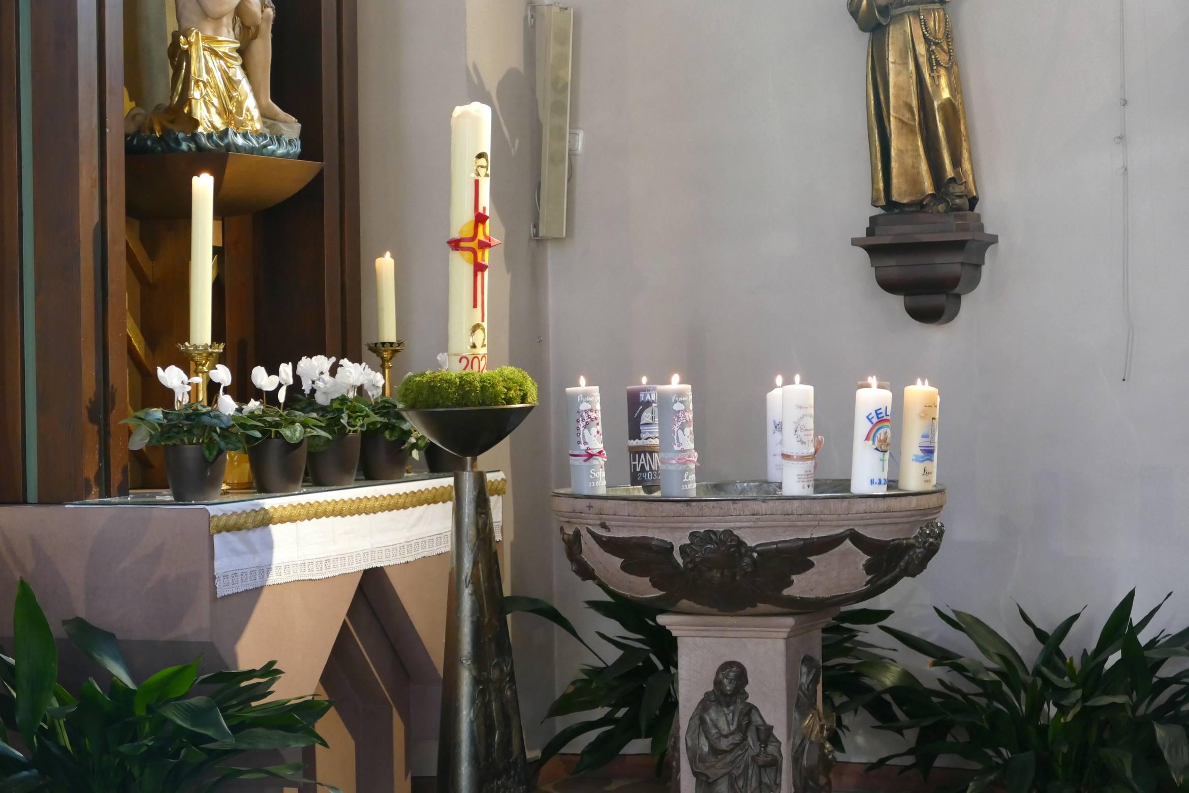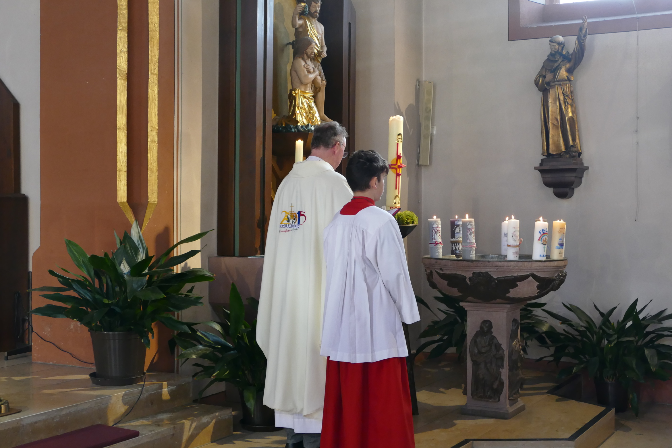 Auch heuer wurden zu diesem Anlass die Tauffamilien der Pfarrei Kirchzell des vergangenen Jahres eingeladen. Einige Familien sind der Einladung gefolgt und feierten den Gottesdienst am Sonntag morgen in der Pfarrkirche mit. Zu Beginn stellten sie sich vor und es wurde die jeweilige Taufkerze an der Osterkerze entzündet. Die Familien brachten sich bei verschiedenen Texten mit ein und gestalteten so auch den Gottesdienst mit. Musikalisch umrahmt wurde die Feier von einer Gitarrengruppe, unterstützt mit Keyboard und Querflöte.
